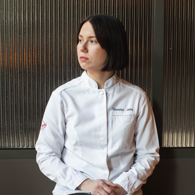 Desirée Jaks är en av Sveriges mest framstående kockar och gastronomiska röster. Hon blev utsedd till Årets Kock 2023, en prestigefylld titel som svensk mästare i professionell matlagning, och har en lång meritlista från både nationella och internationella tävlingar.